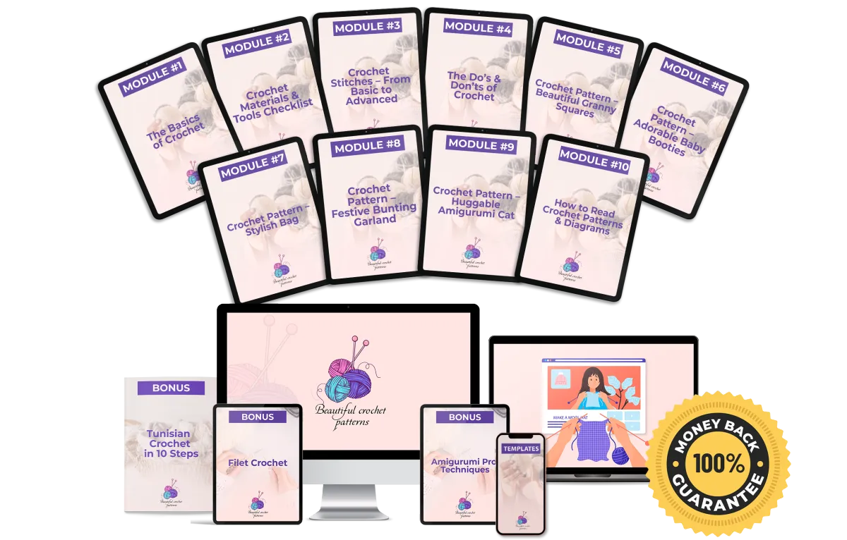 I’ve laid it all out step by step so you can literally take my proven patterns, methods, and insider tips and start creating beautiful crochet pieces right away – without trial and error.